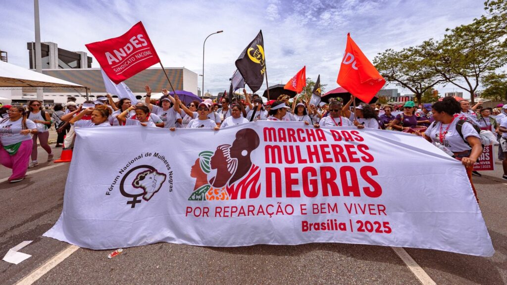 Em marcha histórica, mais de 200 mil mulheres negras do Brasil e outros 40 países ocuparam a Esplanada dos Ministérios, em Brasília (DF), nesta terça-feira (25), durante a 2ª Marcha das Mulheres Negras, que teve como tema “Por Reparação e Bem Viver”. Organizada pelo Comitê Nacional da Marcha das Mulheres Negras, a mobilização pautou direitos fundamentais como moradia, emprego, segurança, vida livre de violência e políticas de reparação para a população negra.