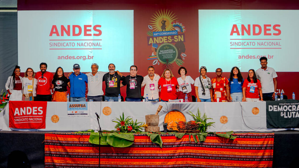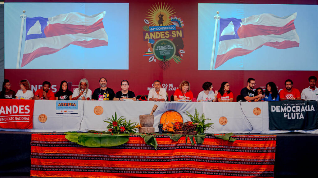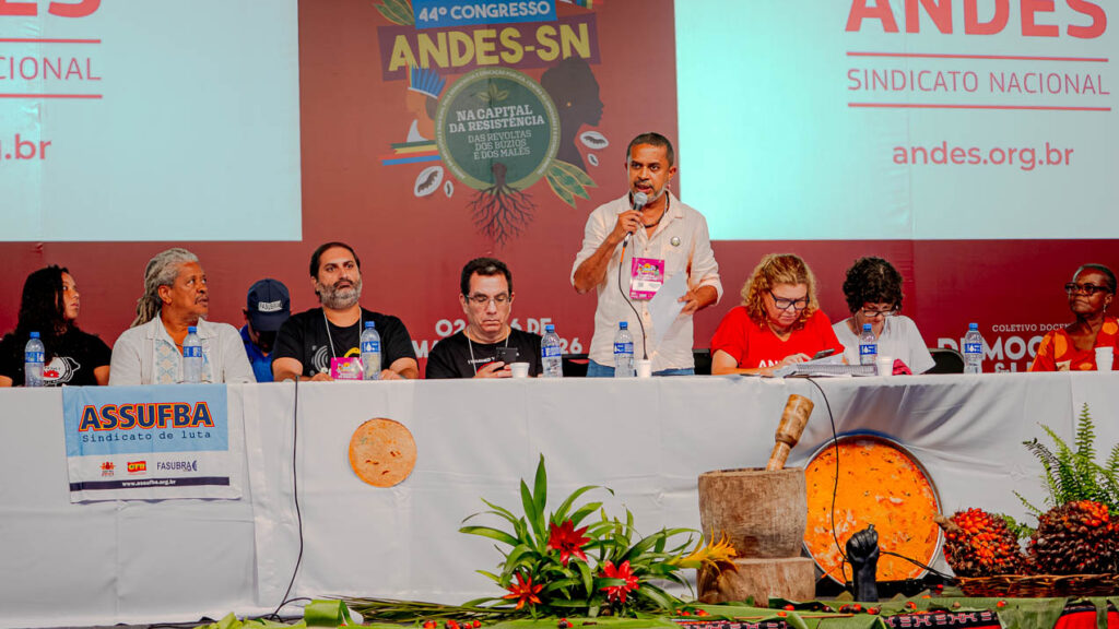 “O que foi pactuado no acordo de greve precisa ser respeitado. Aqui em Salvador, neste momento, estamos iniciando uma greve e já temos um calendário de lutas para reverter o quadro de dificuldades que enfrentamos”, afirmou. Para Bomfim, a realização do 44º Congresso do ANDES-SN na capital baiana reafirma a importância de fortalecer as lutas em defesa da democracia, da educação pública e contra todas as formas de opressão. Ele também destacou a memória das lutas históricas do povo baiano. “Aqui honramos a memória das revoltas dos Malês e dos Búzios. Só nos resta a luta. Lutar é o nosso caminho”, concluiu.